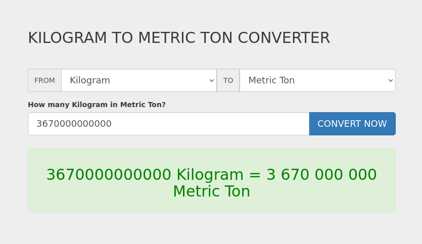So metric ton = 3,670,000,000,000 kg = 3,670,000,000 mt