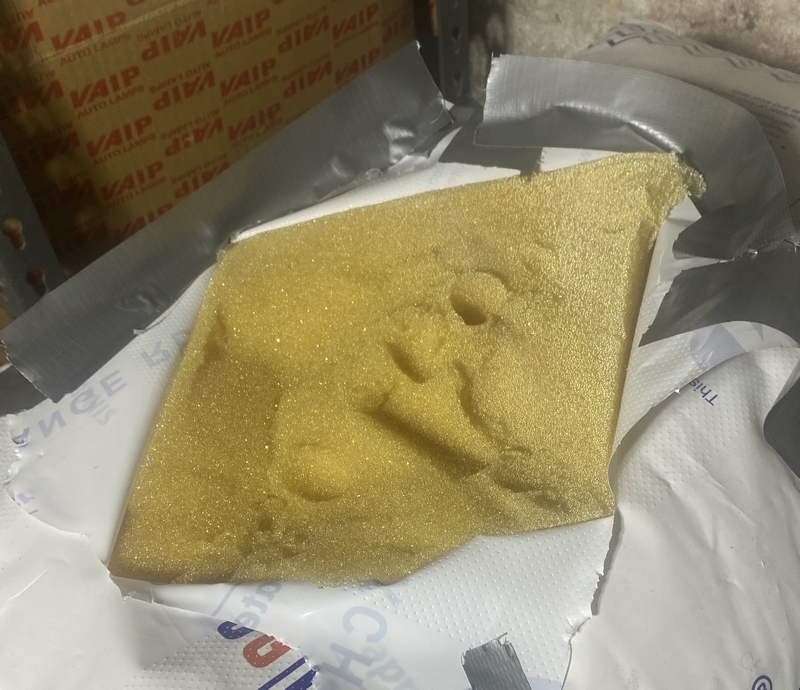 The resin comes with a tear out funnel that doesn’t work well and trying to lift a bag of resin with a funnel that gets clogged all the time is just not fun. Like others, I just cut the bag from the middle of one side. Basically, make an X and peal back all four parts. To help keep them out of the way, duct tape them down. I also added a bit of a duct tape riser fence on the back side to help keep resin from coming out the wrong way. It was a simple scoop and drop and another Margarine container was perfect for that.